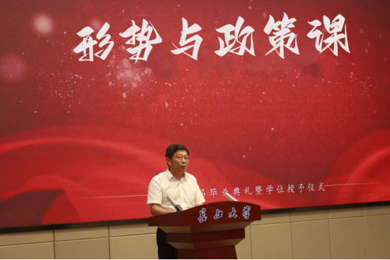 6月8日下午,在武汉校区学术报告厅,betway必威经理江厚顺为2023届全体毕业生讲授形势与政策课。