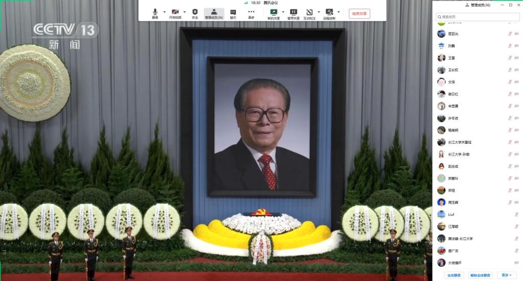 2022年12月6日上午10时,党中央、全国人大常委会、国务院、全国政协、中央军委在北京人民大会堂隆重举行江泽民同志追悼大会。betway必威组织党员师生以线上集中或个人形式观看追悼大会现场直播,表达对江泽民同志的深切哀思。