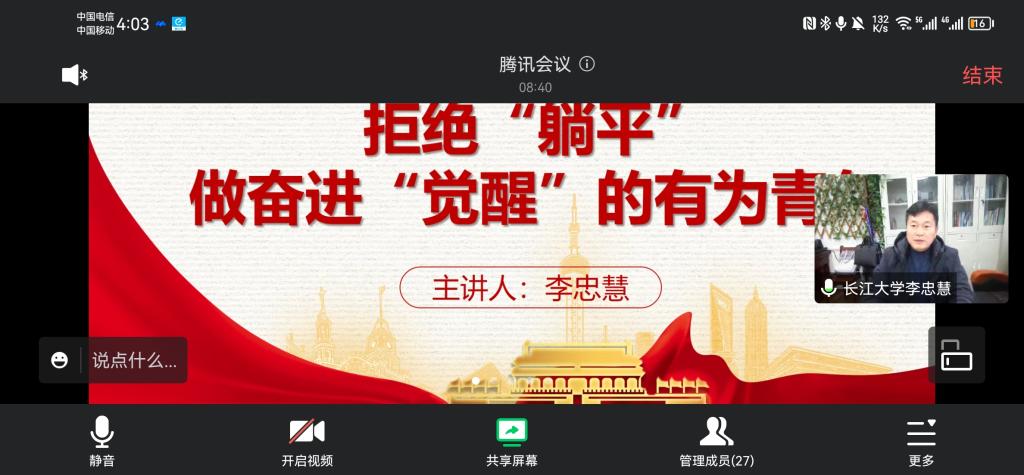 最后,结合当前疫情形势,李忠慧告诫同学们理性思考、明辨是非,严格遵守疫情防控的各项规定,认真履行疫情防控个人责任和义务,积极配合学校疫情防控各项工作,共同筑牢疫情防线、守护健康校园。