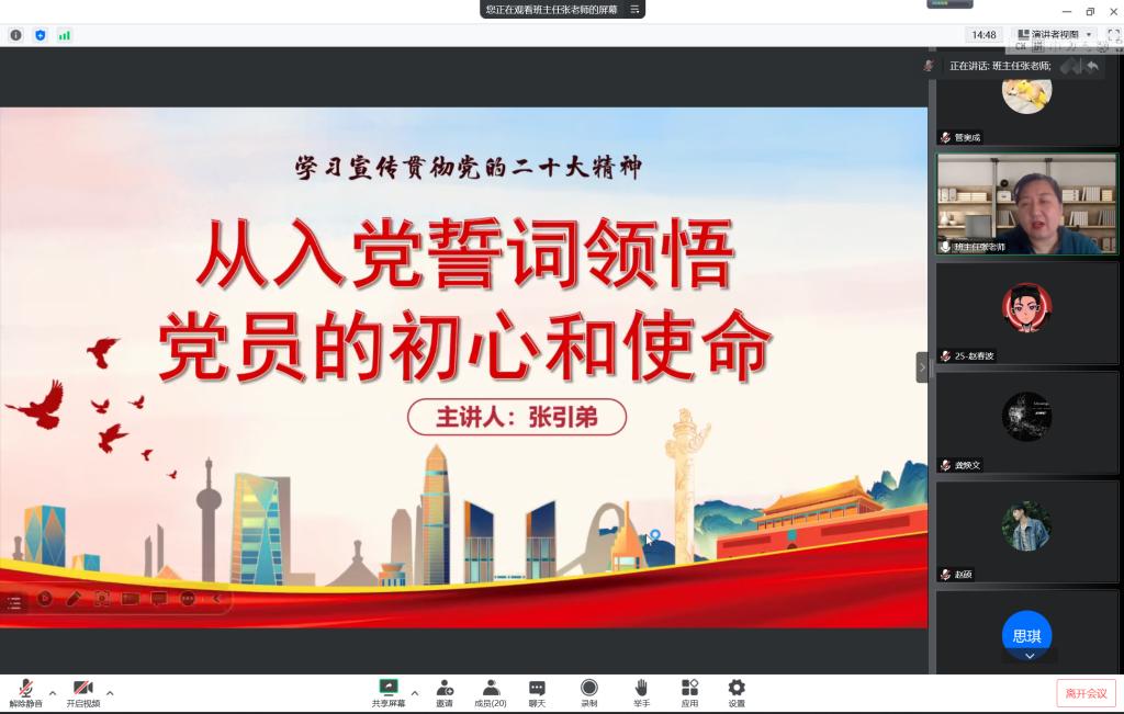 张引弟围绕学习入党誓词永葆入党初心、践行入党誓词牢记忠诚使命、铭记入党誓词夯实忠诚信仰、学习二十大奋进新征程四个方面为同学们授课,激励同学们端正入党动机,对党忠诚,永不叛党。详细解读了党从土地革命时期到十二大以后的入党誓词的变化,体现了党与时俱进的精神品质,红色精神的一脉相承。强调建党以来,新发展的党员一般都要面对党旗,宣读入党誓词。这意味着一种身份的转变、责任的承担和忠诚的承诺,意味着以后的人生将具有更加坚定的理想和信念。她还提到,要让党的优良传统作风在青年一代得到传承,最关键的是传承崇高的理想信念。理想信念坚定了,忠诚于党的意识强化了,红旗才能传千秋。