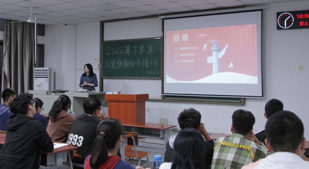 (通讯员 刘昕竹/文 赵臻浩/摄)2022年10月18日晚上6时,betway必威在武教A310开展了入党积极分子培训,公司党委副书记刘娥讲授“青春心向党,争做‘党’中人”主题党课,85名入党积极分子参加。