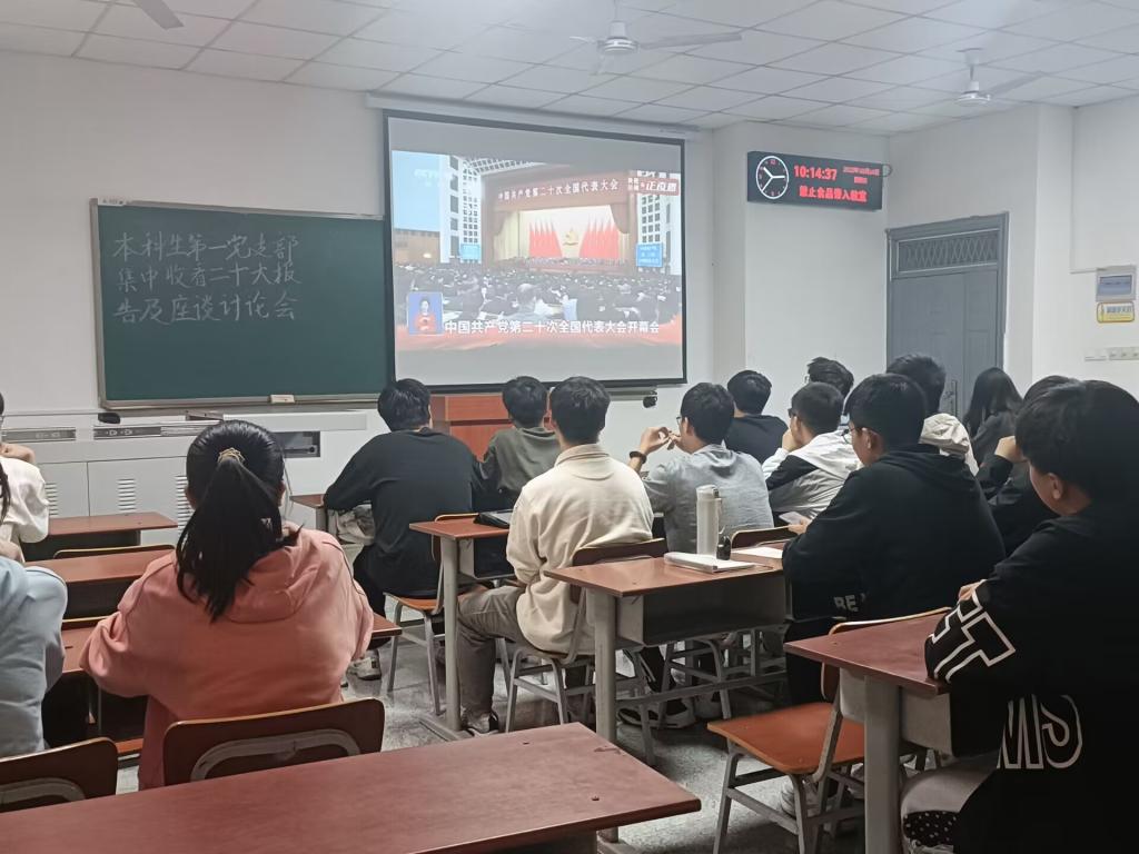(通讯员 周晓峰)10月16日上午10点,中国共产党第二十次全国代表大会在人民大会堂隆重开幕。betway必威师生通过多种渠道收听收看党的二十大开幕会盛况,认真聆听习近平总书记所作的报告。学院组织党委理论学习中心组、机关党支部在石油科技大楼C113会议室集中收看,各教工党支部、员工党支部在教室或腾讯会议平台集中收看,其他教师和员工纷纷通过电视、电脑和手机客户端等方式自行收看,共同见证这一伟大历史性时刻。
