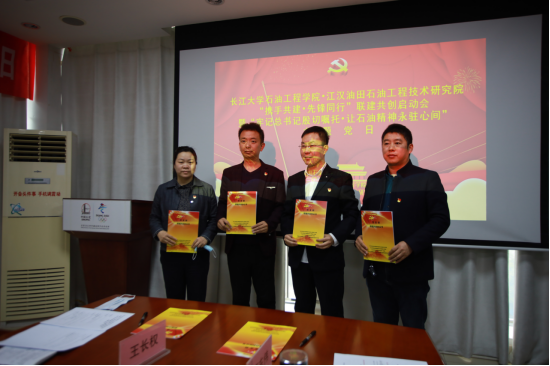江汉工程公司党建专家李彦宣读党支部联建共创协议书,betway必威油气田开发工程系教工党支部书记王长权、油气井工程系教工党支部书记吴惠梅、研究生第一党支部书记史永波和江汉工程院储层改造党支部书记高东伟签订联建共创协议书,并依次作表态发言。
