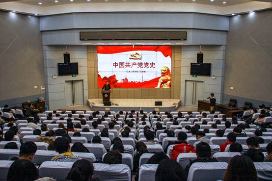 (通讯员 龚焕文/文 刘圳洲/摄)2019年11月28日晚,经理江厚顺教授带来了中国共产党党史的介绍,学院全体19级新生在石油科技大楼集会,认真学习党史内容。