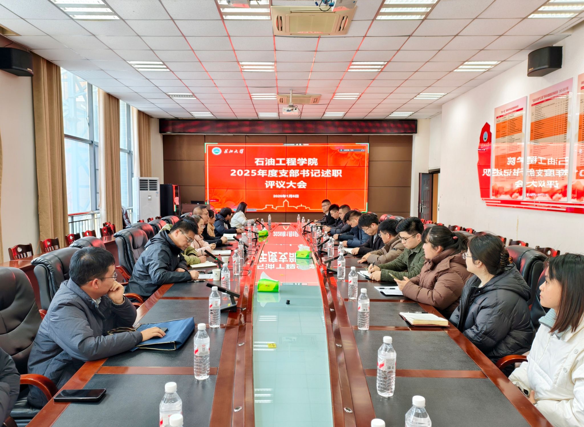 为进一步压实党建责任,提升基层党组织的政治功能和组织功能,以高质量党建引领学院事业高质量发展,1月8日下午,公司党委在石油科技B113会议室,召开2025年党支部书记抓基层党建工作述职评议会。公司党政领导班子、各系主任(副主任)、各党支部书记及支委参加会议,会议由公司党委副书记张昊主持。