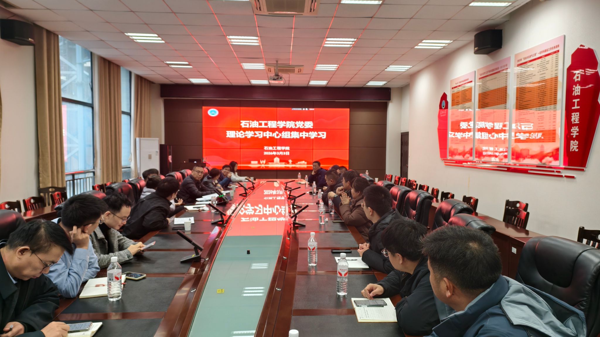 3月3日下午,公司党委理论学习中心组在石油科技大楼B113会议室开展集中学习(扩大)会,中心组成员、教工党支部书记、系(中心)主任、研究所所长和教学团队负责人参加。会议由党委书记张伟主持。