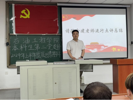 (通讯员 向雪芹)4月24日晚上,本科生第二党支部于武教B-105举行拟确定发展对象答辩会,本次活动由王京同志主持,支部全体党员和150余名入党积极分子参加。支部书记周晓峰、辅导员陈金建、韩清越受邀担任评委。