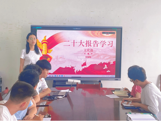 会议伊始,薛宇琪和骆帅同志带领支部同学领读和学习党章,然后由魏莉桐同志和张文浩同志发表了主题为“作为一名员工党员,对学习‘千万工程’和‘浦江经验’案例体会”的感想。接着,任加怡同志和葛建伟同志分别做了题目为“做好中华文化自信排头兵”和“砥砺传承先烈精神生力军“的微党课分享。通过本次党日活动,引领了员工党员学习先进思想,筑牢了红色思想理念,树立了前进奋斗的风向标。