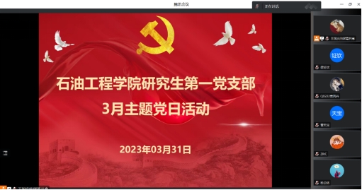 (通讯员 王国庆)3月31日晚上,研究生第一党支部线上召开3月主题党日活动,由王国庆同志主持,支部书记史永波和全体党员同志参会。