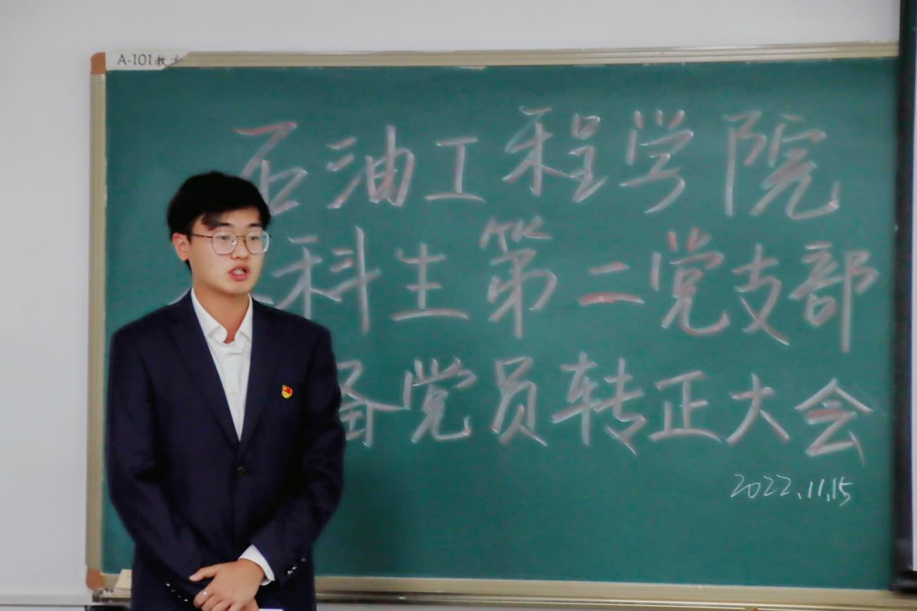 大会最后阶段,由刘书记做总结性讲话,对本次顺利转正的8位同志表示祝贺的同时,明确指出:只有发自内心的主动去全心全意为人民服务,做实事干实事的先进分子才有资格成为一名合格党员,深切希望同学们都能努力学习、认真工作,时刻严格要求自己,用实践去检验真理,用自己的实际行动体现党员的先进性。