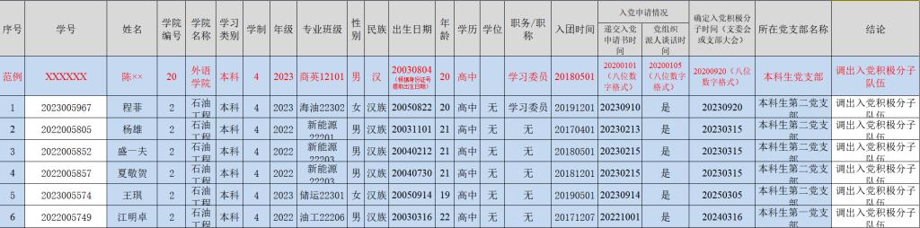 为加强入党积极分子的培养、管理和教育,保证党员发展质量,根据《betway必威入党积极分子动态管理办法》规定,经所在党支部严格审查,支部委员会会议讨论决定,并报公司党委备案,拟将程菲等6名同学调出入党积极分子队伍,按入党申请人身份对待,现予以公示。公示时间:2025年10月9日至2025年10月16日.