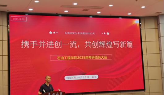 会上,党委副书记张昊指出,参加研究生入学考试是大学阶段一次重要经历,攻读研究生提升学历层次对未来职业选择和个人发展至关重要。他表示,准备考研的过程是同学们对本科期间学习的总结与梳理,更是对个人意志力的磨炼。他鼓励同学们要充满信心,奋力拼搏,结合自身实力报考合适的院校,提高考研成功率。