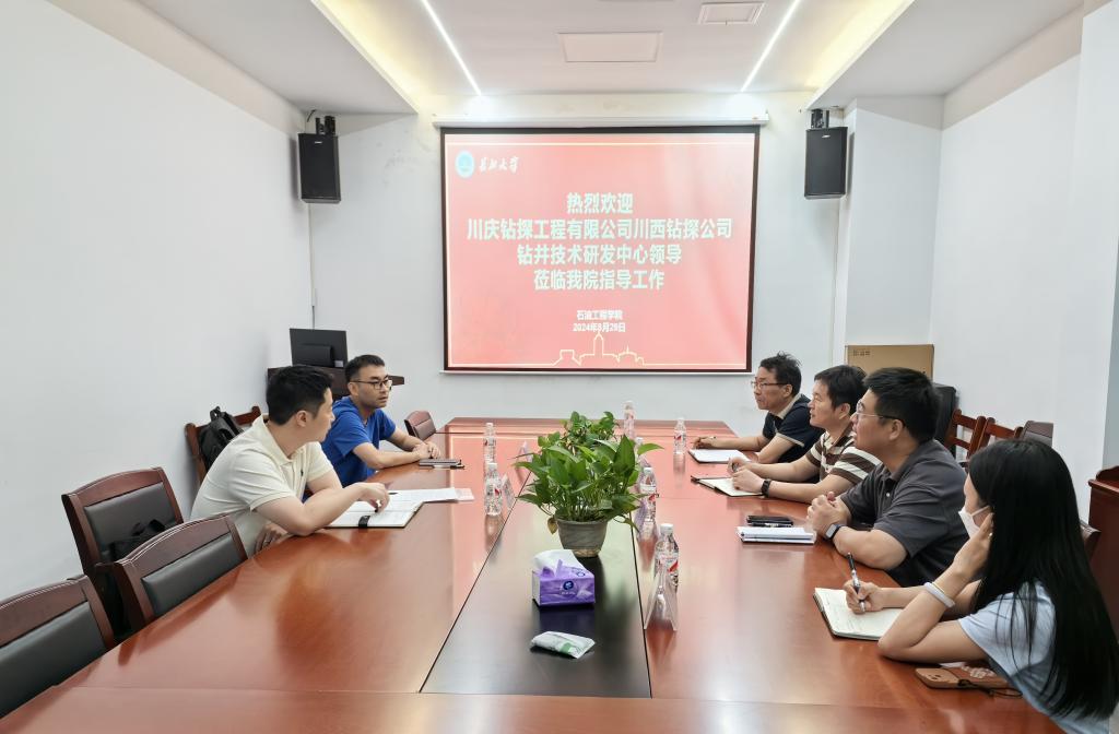 为进一步深化校企合作,2024年8月29日下午,川西钻探公司钻井技术研发中心党支部书记江晓舟、科技研发部主任游炎平一行到访公司,就共建“研究生联合工作站”事宜进行交流,学院常务副经理李忠慧、党委副书记张昊、实验中心主任马超等参加了座谈。