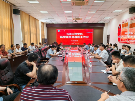 8月25日上午,betway必威在石油科技大楼B113会议室召开试用期满干部考核民主测评大会暨全院教职工大会,武汉校区党工委书记崔青山一行出席会议。学院全体教职工参加会议,会议由公司党委书记张伟主持。
