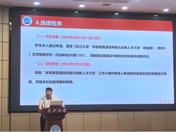 张顶学为同学们解读了《betway必威2025届毕业生“本硕博贯通培养拔尖创新人才计划”选拔工作方案》。他指出,创新人才计划针对本科毕业生包括“3+1+2本硕连读”以及“4+5直博”两种模式,选拔条件是必修课绩点专业排名前30%,本硕连读需要通过外语四级,直博则需要通过外语六级,员工取得推免资格后正式生效。他希望同学们根据自身实际情况做好学业规划,积极申请并参与选拔。