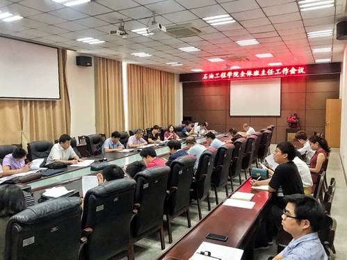 9月26日下午4时许,在石油科技大楼B113会议室,学院召开全体班主任会议。会上对近期员工工作情况做了通报,对安全及心理健康工作、“十一”国庆长假事宜、员工就业考研工作、本科生英语四级工作做了详细的安排,对下一步工作做了明确部署。会议由党委副书记刘娥主持,党委书记张光明、经理江厚顺出席会议,各年级本科生班主任以及学工办全体教师参加会议。