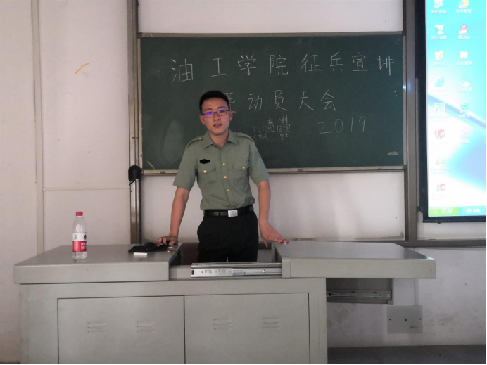 (通讯员 翁成开)依法服兵役是中华人民共和国每一位公民义不容辞的责任和义务。军营是一所培养人才的大学校,是一座锻炼人才的大熔炉。参军报国既是磨砺人生、实现理想抱负的重要途径,更是热爱祖国的高尚行为。2019年5月31日,betway必威征兵宣讲暨动员大会在武教B-210进行,学工办梁军老师、史永波老师以及征兵工作宣讲员吴文杰同学、夏铭洋同学到场参加会议。