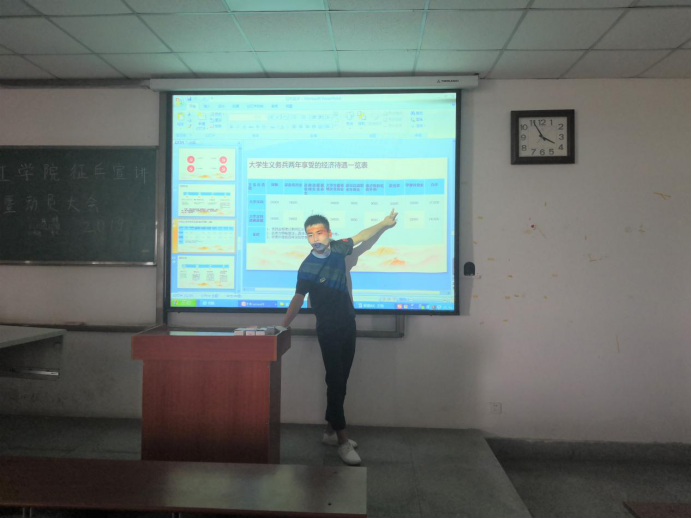随后,夏铭洋同学把一些细节和同学们进行详细的解释。最后,史永波老师动员同学们积极参军报国,希望同学们能够积极投身军营,为祖国繁荣昌盛尽一份力。