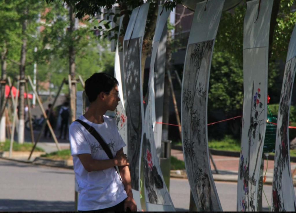 据悉,在绘画方面,祁倪军同学在绘画方面尤为擅长写意花鸟花,本次展览中“最美长大涌热潮”主题中,学长为必威官网所作的八幅四尺写意花鸟画选取了武汉校区四季各两种花卉。有懂得绘画的同学评价这些作品:用笔精到,色彩浓淡相宜,画面构图朴素自然,实乃佳作!而在书法方面,祁倪军学长尤为擅长欧楷,本次展览中《将进酒》就是一幅学长较为优秀的欧楷作品,同样引得众多师生驻足欣赏。