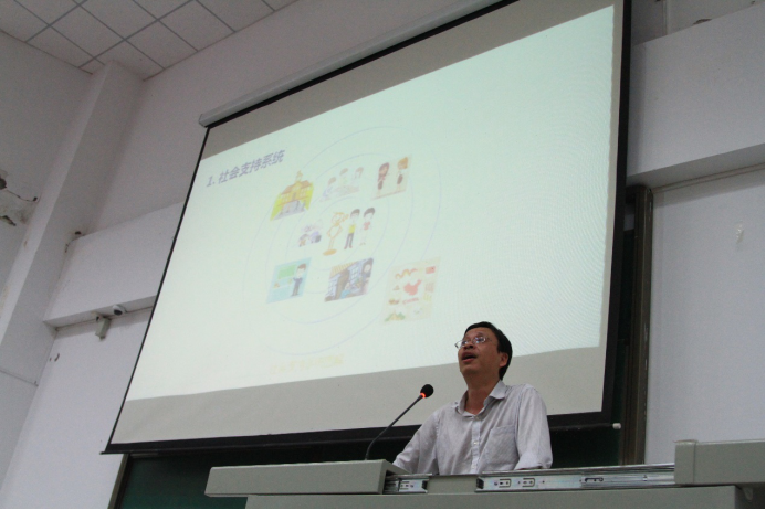 炎热的天气丝毫没有消磨同学们的热情,18级各班同学早早来到B101教室,7时整,大会准时开始。首先,梁军老师从社会支持系统、构建良好人际关系、员工干部必备技能、交流与讨论四个方面为大家讲述了人际关系的相关内容。当你遇到困难时会向谁求助?当你感到高兴时,你会与谁分享?所谓社会支持系统,就是个人得以维持社会身份并且获得情绪支持、物质援助和服务、信息与新的社会接触。梁老师首先解释了社会支持系统的含义。
