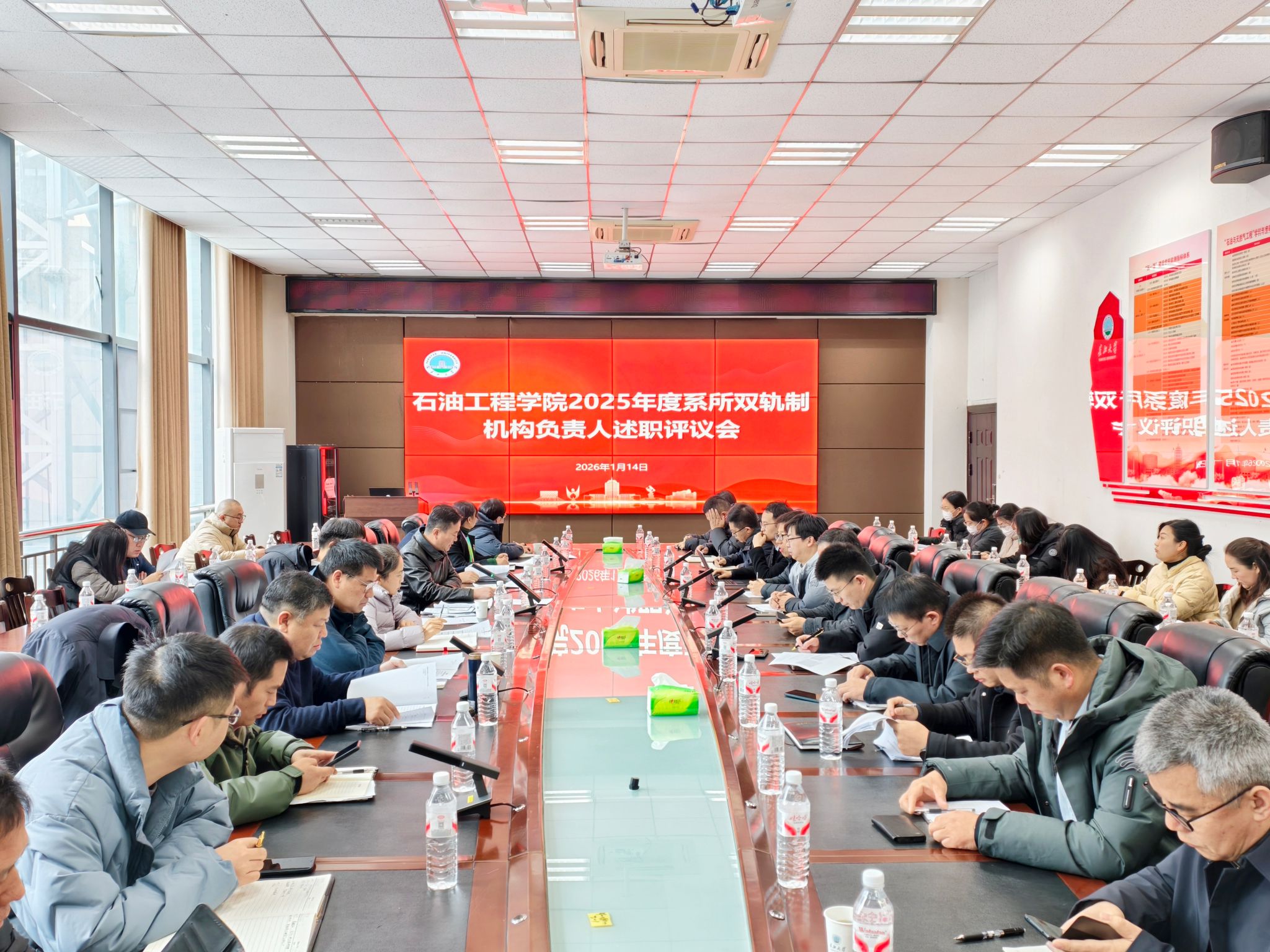 为全面检阅教学研究和科学研究中心年度目标任务完成情况,进一步推进学院机构与机制改革落实落地,1月14日上午,betway必威在石油科技B113会议室,召开2025年度系所双轨制机构负责人述职评议会。院领导,学术委员会,教学委员会、教学运行中心、教学研究中心、科学研究中心、实验中心主任及秘书,各研究所所长、各教学团队负责人、系主任、教工党支部书记、全体行政管理人员等60余人参加会议。