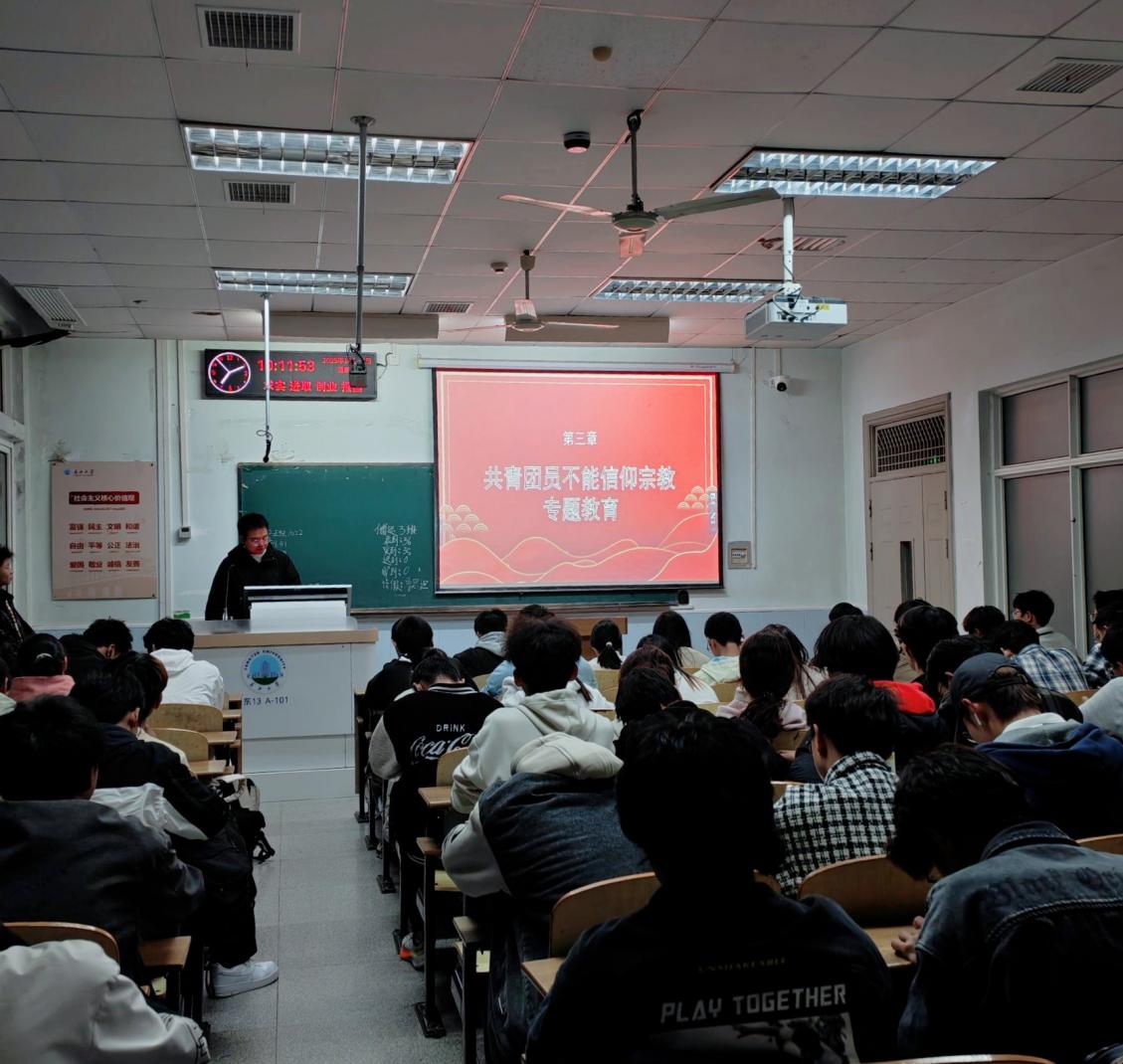 此外,校团委围绕“共青团员不能信仰宗教”主题开展专题教育。通过理论阐释、典型案例分析等进一步明确,共青团员作为党的助手和后备军,必须坚定共产主义信仰,坚决抵制宗教思想侵蚀。此次教育切实增强了团员们的政治意识与纪律意识,筑牢了理想信念根基。