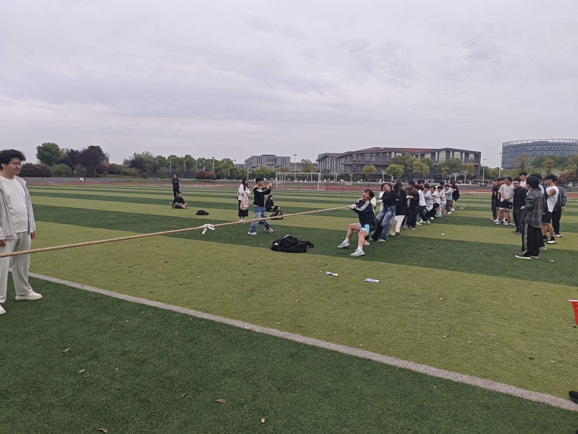 本次比赛旨在通过体育竞技的形式,引导员工树立“健康第一”的理念,在拼搏中锤炼意志,在协作中增进友谊。赛场上,各支队伍严阵以待,随着裁判员一声哨响,比赛双方迅速进入战斗状态。队员们紧握长绳、重心下沉、咬紧牙关,将全身的力量汇聚于手中的绳索,每一次发力都伴随着震耳欲聋的呐喊。无论是僵持阶段的耐力比拼,还是关键时刻的猛然爆发,都生动诠释了“心往一处想、劲往一处使”的团队真谛。场边观赛的师生自发为队员加油,加油声、助威声此起彼伏,将现场气氛推向高潮。