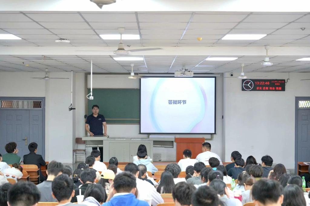 最后,韩清越对会场秩序进行了点评,并对实践队员们的分享进行了补充。他表示,学校将继续与企业进行深入交流与合作,为同学们争取更多的实践机会。同时,他也希望同学们能认真听取实践队员们的经验分享,认真规划老员工活,为未来职业发展打下坚实基础。