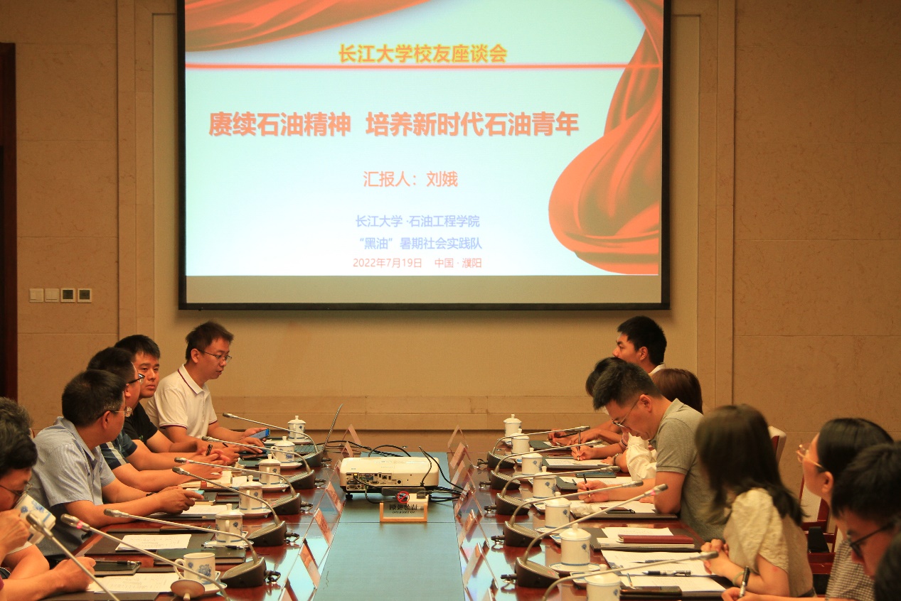 龙乡伟力,青年赋能。在中原油田公司李建雄经理介绍入场嘉宾之后,座谈会便从一个宣传片正式开始。“目光所至,皆是石油精神,皆是青年担当。”,通过简短的视频,向队员们展现了中原油田展示了磅礴的创造伟力:每年高起点研究项目550余项,建立国家级、省市级重点实验室若干;在创新领域,他们不甘落后,建立创新工作室、创新成果孵化基地、创新发展联盟;他们激情四射、热爱生活,不惧挑战,拥抱变化,以“传承、创新、多元、进取,并且永不满足”为口号,履行社会责任,彰显国企担当。