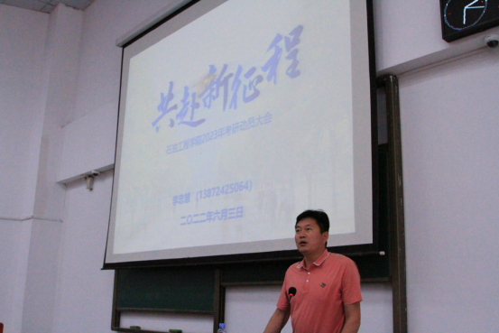 大会伊始,副经理李忠慧教授对参加本次动员大会的同学及老师表示热烈欢迎,并做《共赴新征程》主题汇报,从行业人才需求、学院betway必威介绍发展史、公司产品模式、奖助体系以及报考本院研究生优势等方面做详细介绍。他强调石油是非常重要的战略资源,鼓励大家继续深造,为祖国发展贡献力量。同时学院有能力、有平台、有信心培养高质量的研究生,欢迎本校员工积极报考必威官网硕士研究生。
