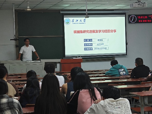 2025年10月14日,石油工程公司“求实导师学校”系列活动在武教A108举行。本次学术沙龙主讲韩伟伟特任教授为同学们带来了主题为“碳捕集研究进展及学习经历分享”的专题报告。现场吸引了众多本科生、研究生积极参与。 韩伟伟特任教授本硕毕业于安徽工业大学,博士就读于韩国东国大学,长期从事碳捕集与利用(CCUS)、燃烧机理及储能材料等领域的研究工作,已在国际知名SCI期刊发表多篇高水平论文,并担任多本国际能源类期刊副主编或学术编辑,曾荣获国家优秀自费职工奖学金、安徽省优秀硕士学位论文等多项荣誉。 在报告中,韩伟伟特任教授结合“双碳”目标的背景,深入浅出地讲解了CCUS(碳捕集、利用与封存)技术的原理、主要环节以及国内外最新进展。他以图文结合的方式,让大家了解如何通过工程技术将工业排放的二氧化碳捕集起来,并加以利用或安全封存,从而减缓气候变化。同时,他分享了自己在国内外求学期间的科研探索和学术交流经历,鼓励同学们在科研学习中保持好奇心与毅力,善于跨学科思考,并勇于走向国际舞台。 讲座结束后,同学们积极提问,就CCUS技术发展趋势、研究方法以及未来就业机会等话题与韩伟伟特任教授展开深入交流。大家纷纷表示,通过聆听此次报告,不仅收获了关于碳捕集领域的前沿知识,也获得了宝贵的学习与科研规划建议,对未来的发展方向有了更清晰的认识。 此次活动不仅为同学们打开了了解前沿能源技术的窗口,也激发了更多青年学子投身能源与环境领域科研创新的热情。