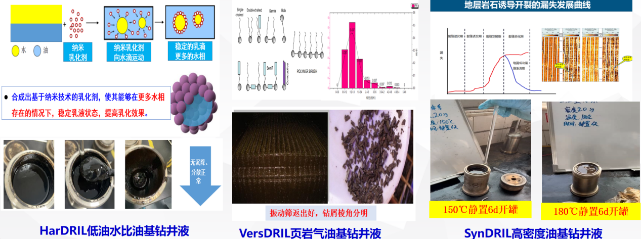研究团队构建了“水替油”超滑水基钻井液体系,具备优异井壁稳定与摩阻控制能力,滚动回收率>95%,润滑系数0.064,性能可媲美油基体系且更环保。与此同时,形成的页岩气油基、高密度油基和超高温油基钻井液已在700余口井成功应用,表现出稳定性高、损耗低、周期短等工程优势,形成水基替代与油基支撑并行的高性能钻井液成套技术。